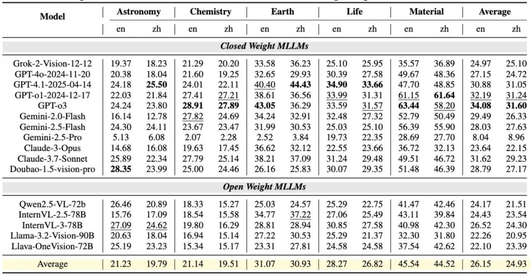评测揭示主流 MLLMs 在高阶科学任务上面临挑战