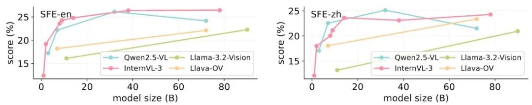 SFE 的数据集构建与多学科领域专家进行了广泛合作,Qwen2.5-VL-72B 甚至低于 Qwen2.5-VL-7B,